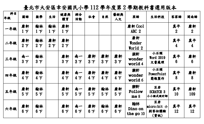 本校112學年度下學期各年級教科書版本請參閱附檔。