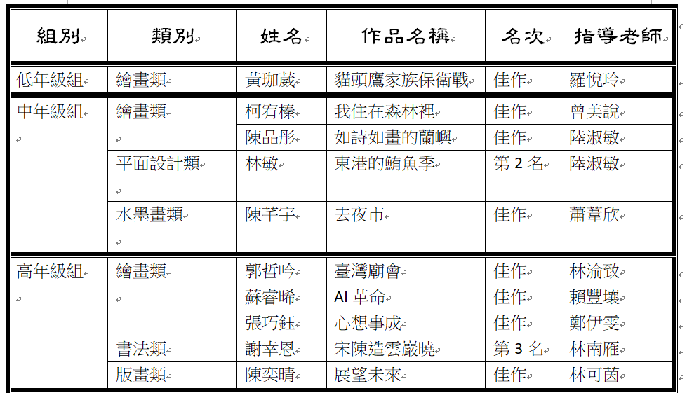 恭喜本校參加112年度臺北市美術比賽強棒出擊!