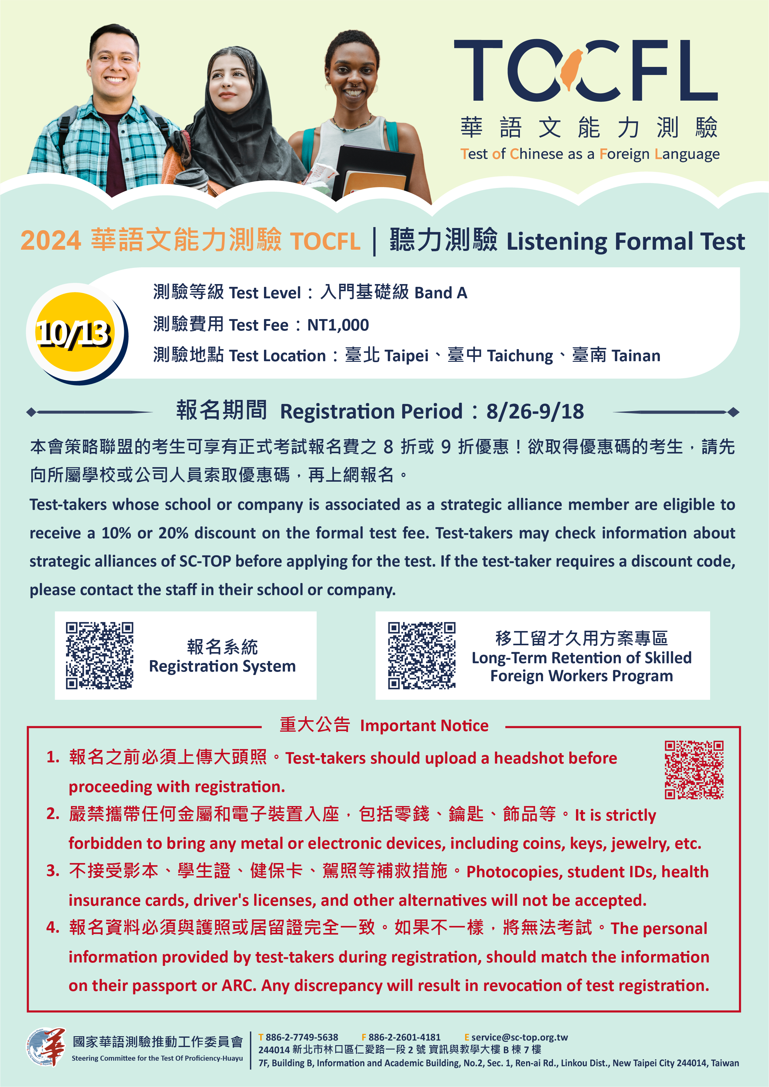 二、 113年10月13日聽力測驗正式考試說明如下: