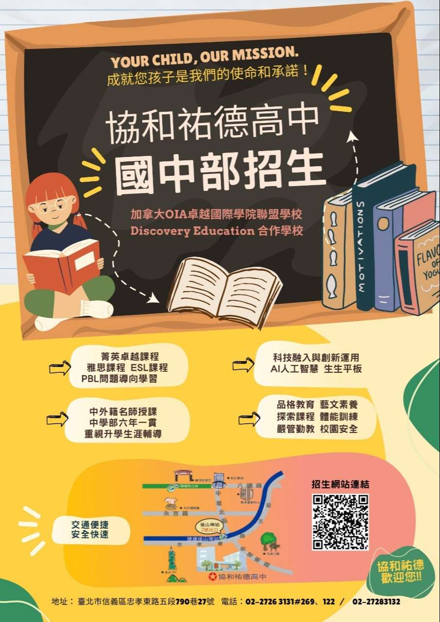三、謹附件:國中部招生DM,掃描DM上之QR code,可查閱國中部網頁及說明會場次,並填具報名表單參加說明會。