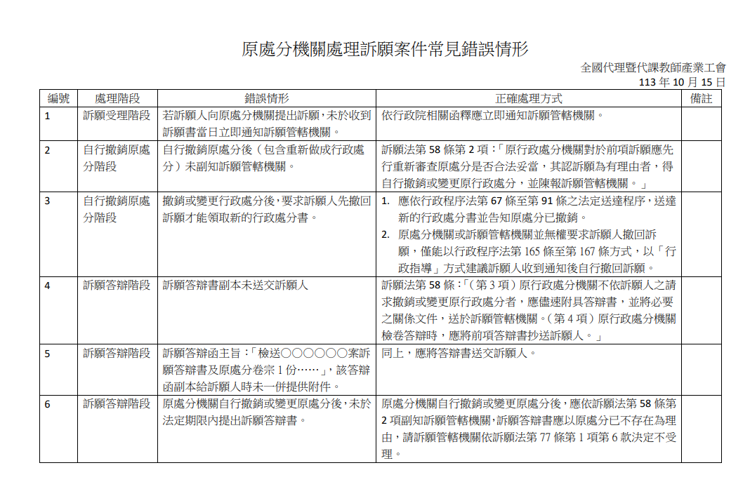 說明:依全國代理暨代課教師產業工會113年10月15日代教產字第 1130200057號函辦理。