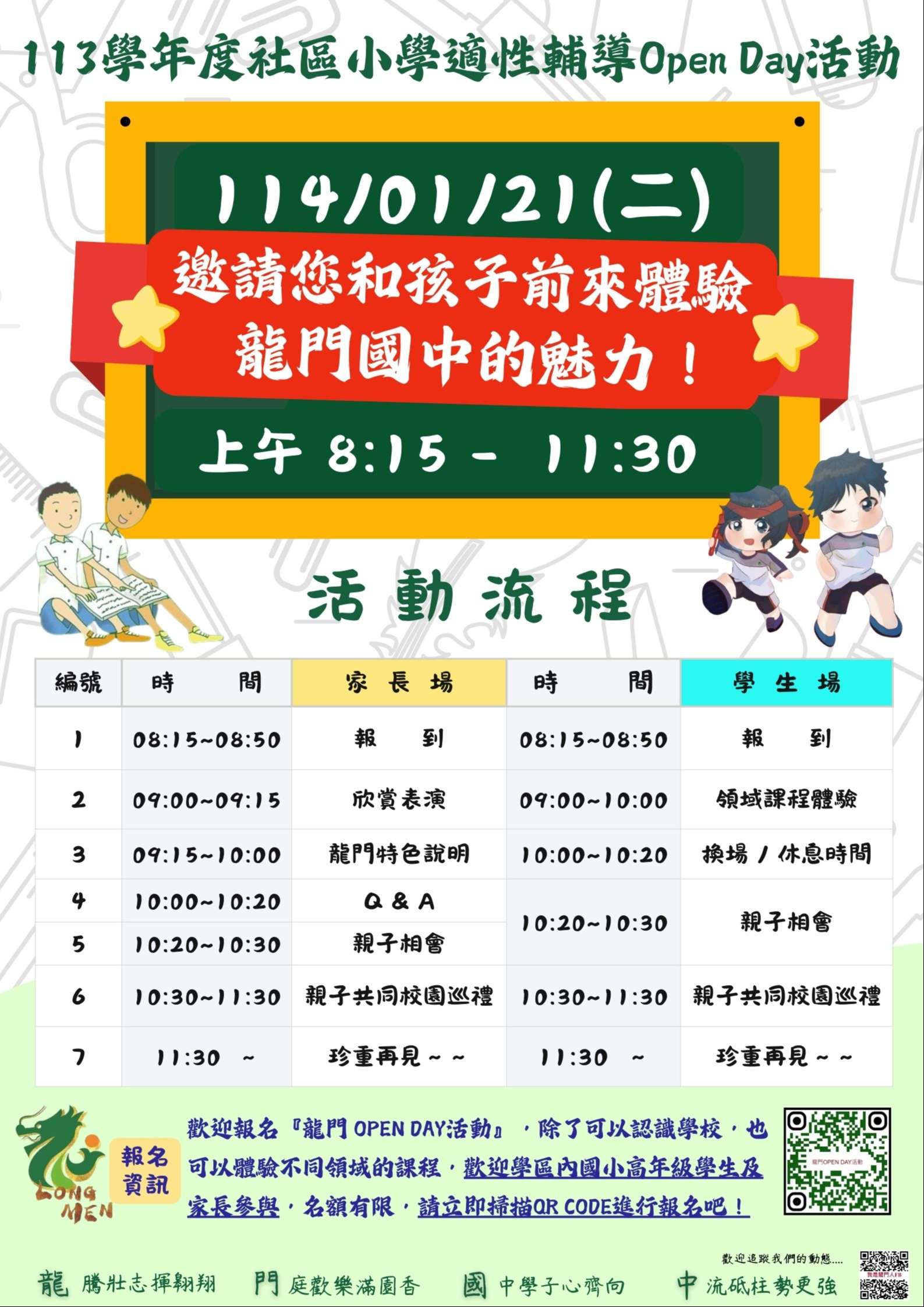 一、提供社區小學家長與學生充分瞭解本校特色與校園環境, 增進適應國中學習與生活能力,作為適性入學參考。