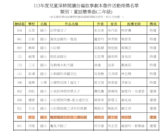 本市國民小學113年度自編故事劇本徵件活動