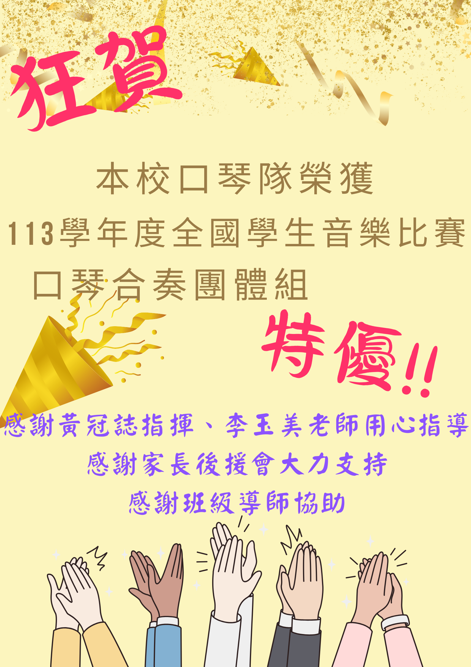 口琴合奏榮獲特優!!感謝冠誌老師及玉美老師用心指導感謝班級導師協助孩子恭喜大家!!