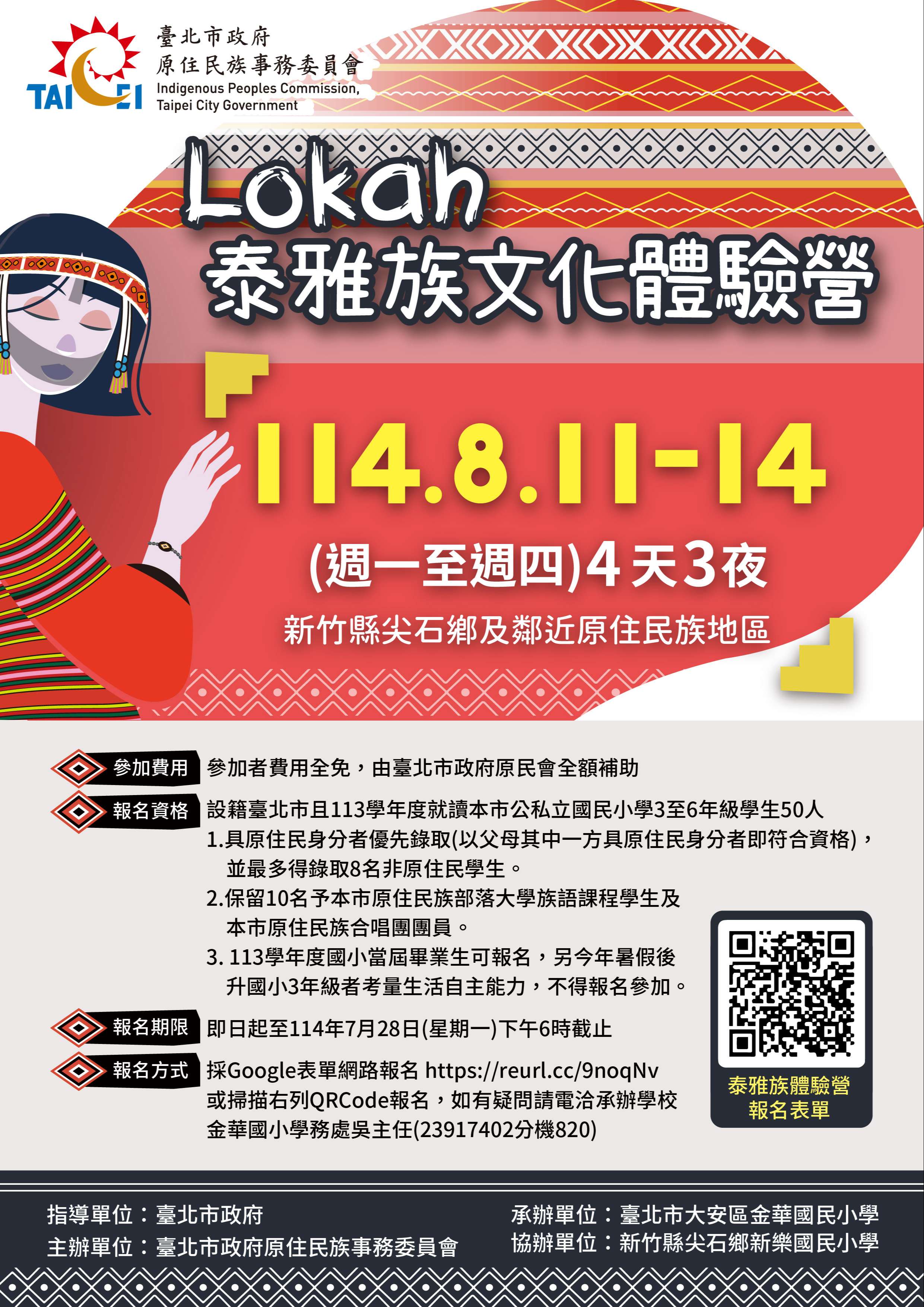 (一)活動日期:114年8月11日(一)至8月14日(四),共4 天3夜。