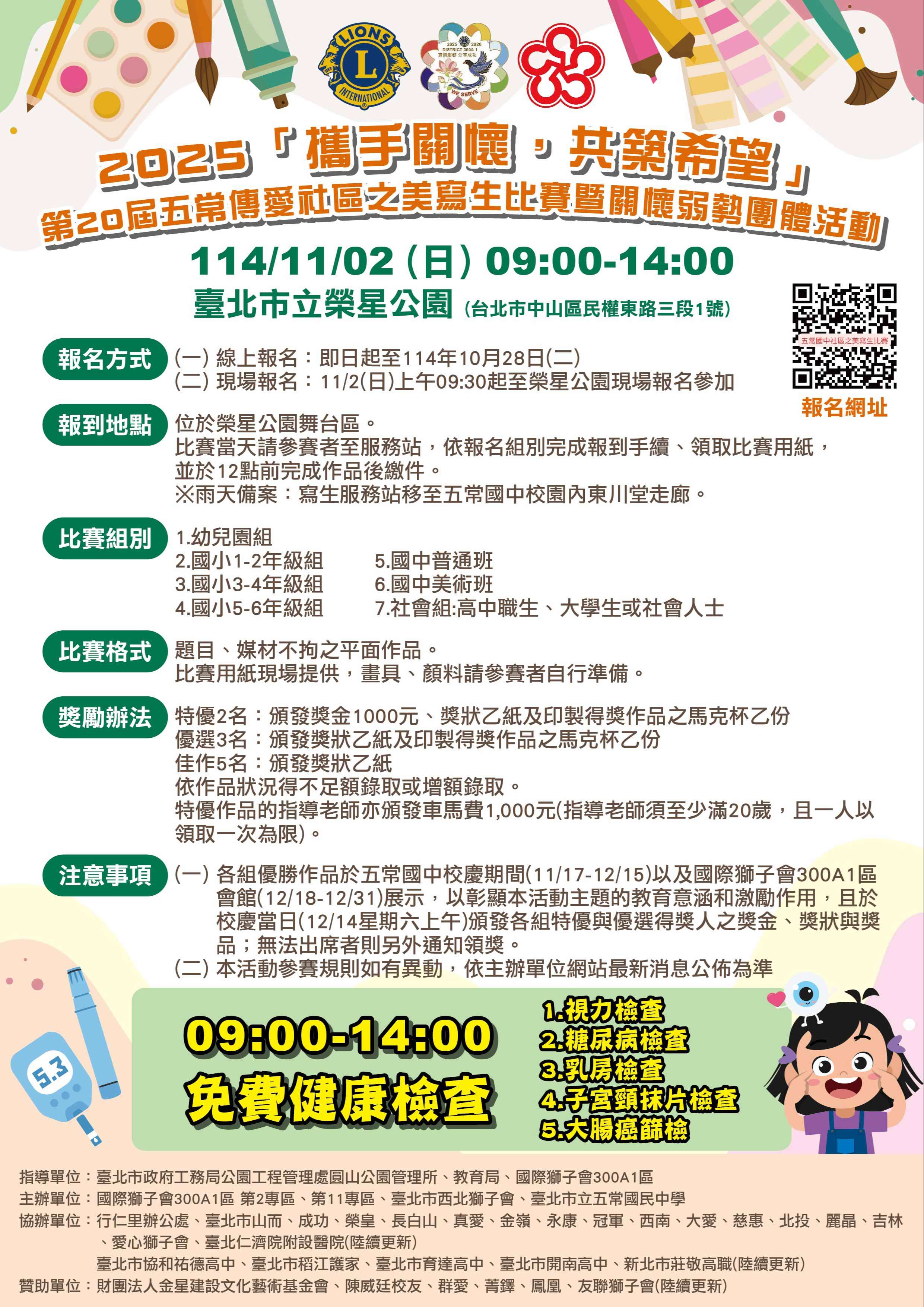 一、比賽時間:114年11月2日(星期日)早上9時至15時整(寫 生比賽至12時)。