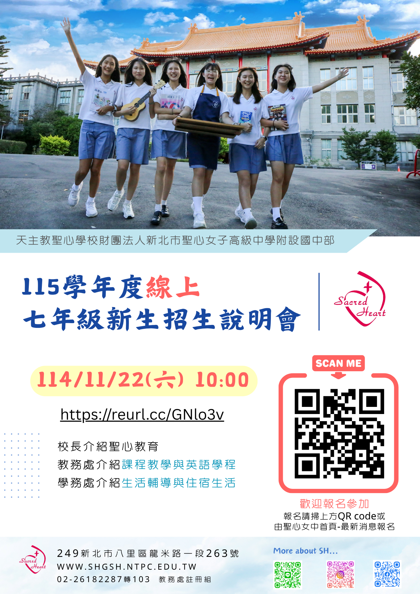 (二) 聖心女中首頁www.shgsh.ntpc.edu.tw—最新消息--115學年度七年級新生線上招生說明會