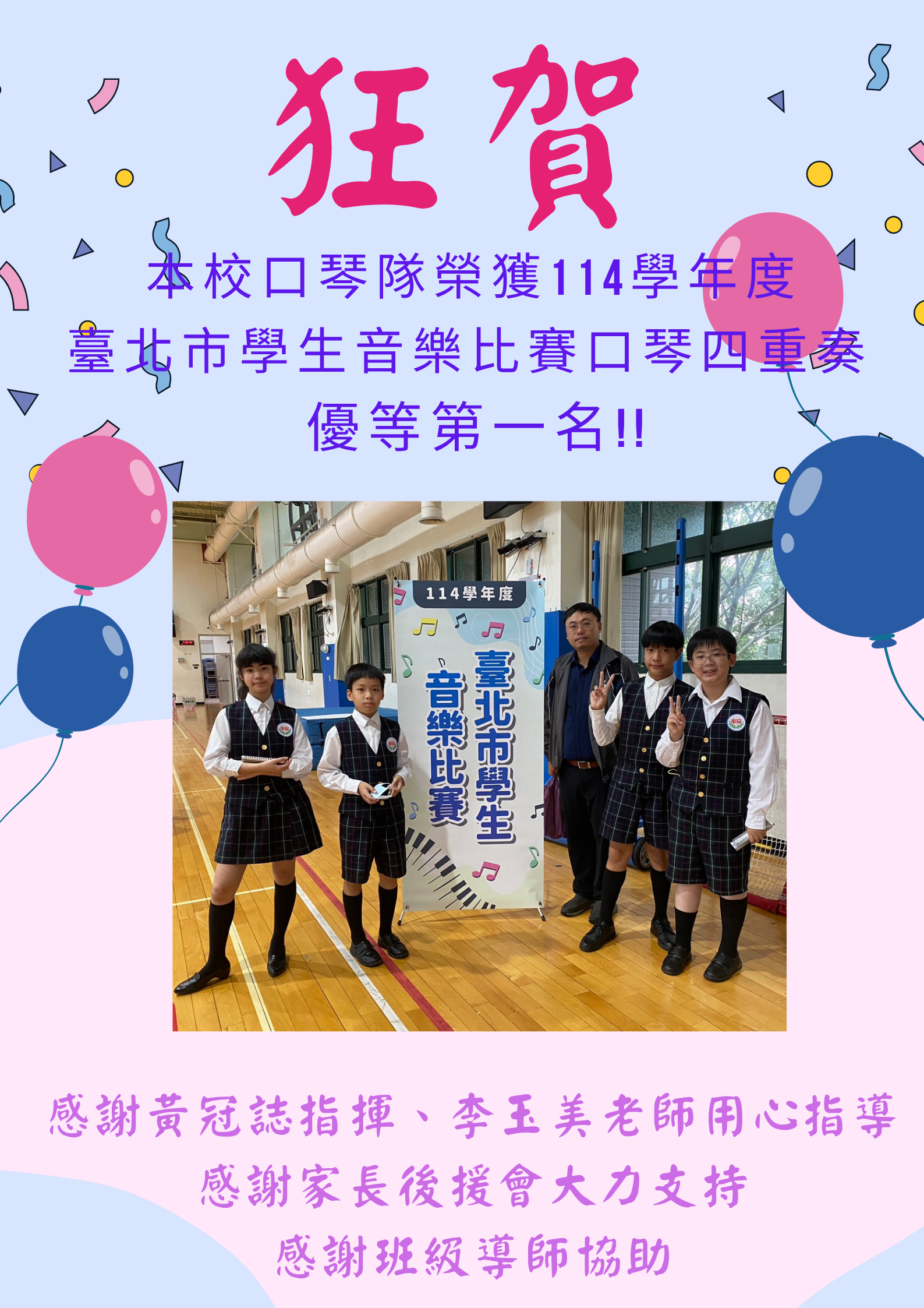 ♥ 賀114學年度臺北市學生音樂比賽