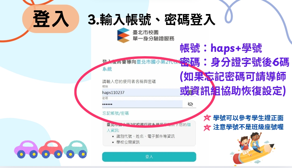 💻登入方式:使用學生單一身分驗證登入(haps學號)