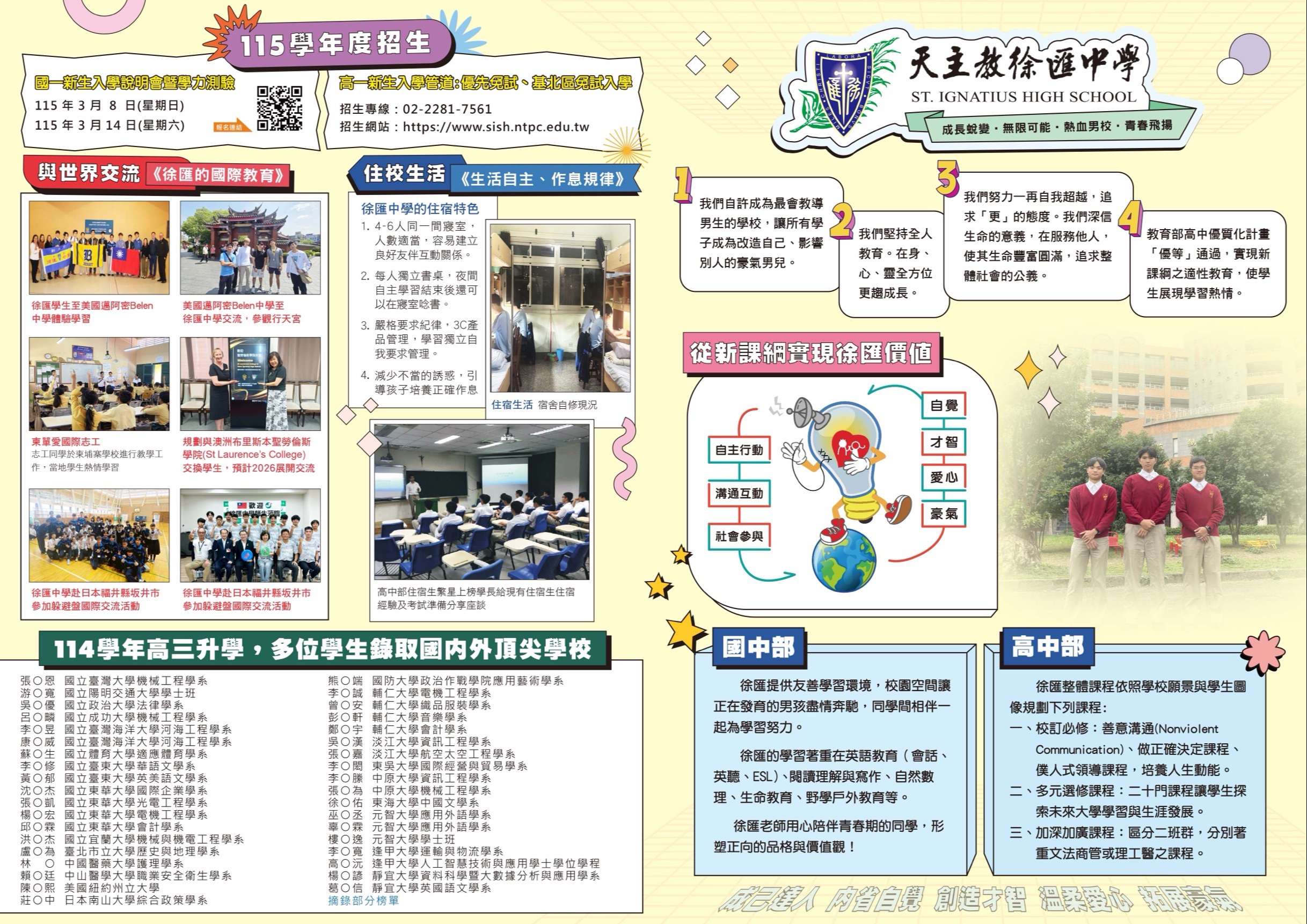 新北市私立徐匯高級中學辦理115學年國一新生說明會資訊