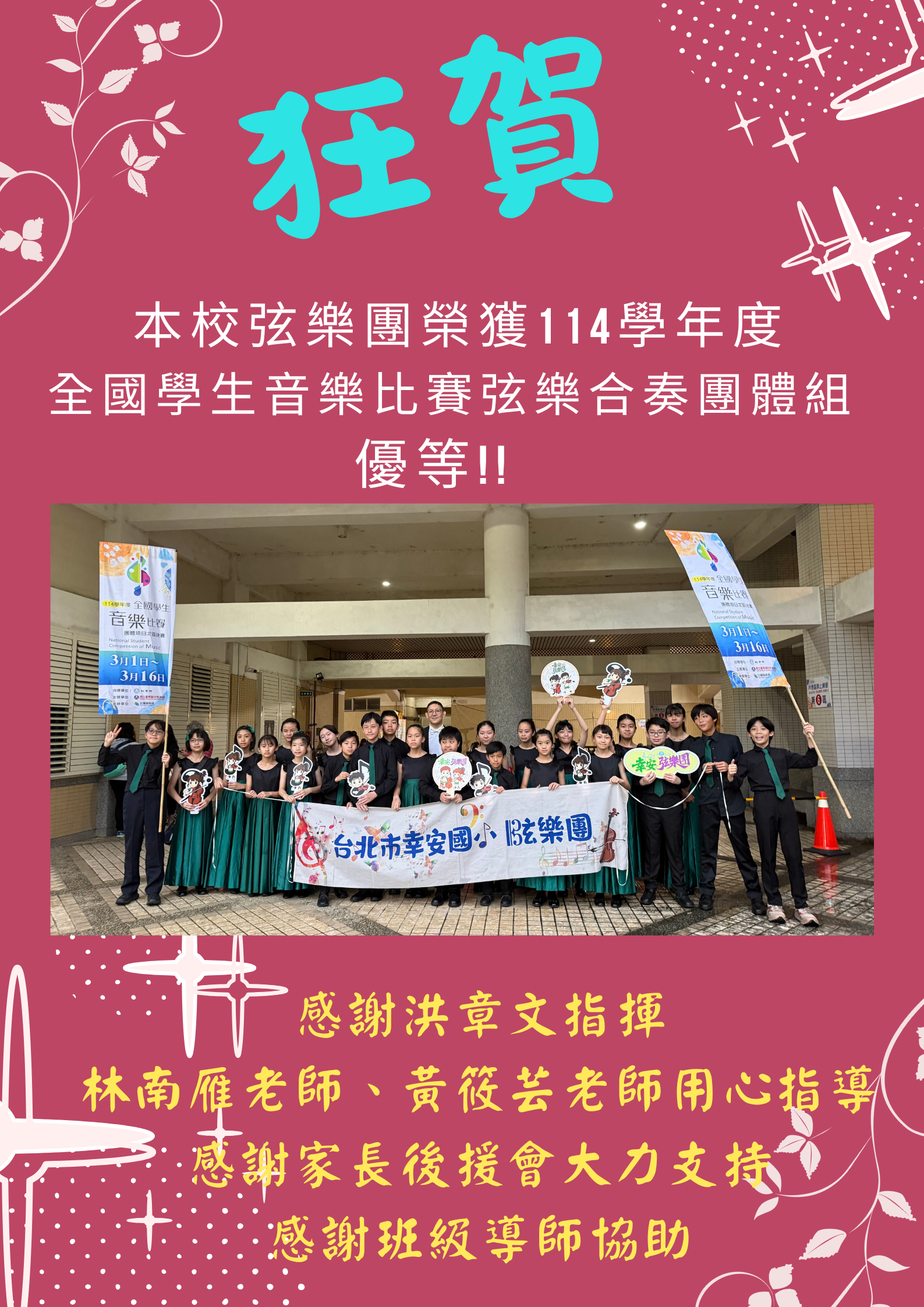 榮獲弦樂合奏優等!!感謝洪章文指揮、林南雁老師及黃筱芸老師用心指導感謝班級導師協助孩子恭喜大家!!