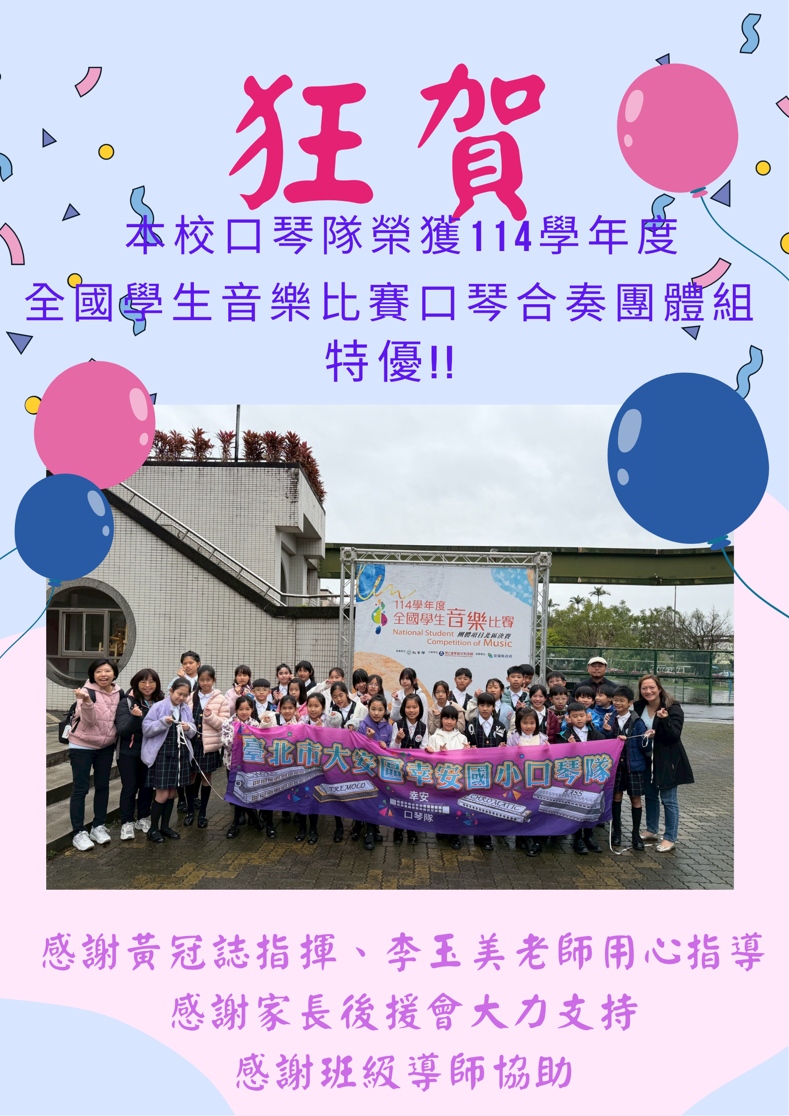 榮獲口琴合奏特優!!(三連霸!!)感謝黃冠誌指揮、李玉美老師用心指導感謝班級導師協助孩子恭喜大家!!