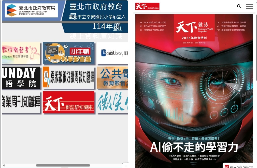 一、天下雜誌845期教育特刊-「AI偷不走的學習力」能協助親師社群建立正確的 AI 教育觀,防止孩子過度依賴工具而喪失思考力,落實「數位時代的學習」教育目標,為孩子的自主學習力打下穩固根基。請透過臺北市線上資料庫知識管理平台閱覽。