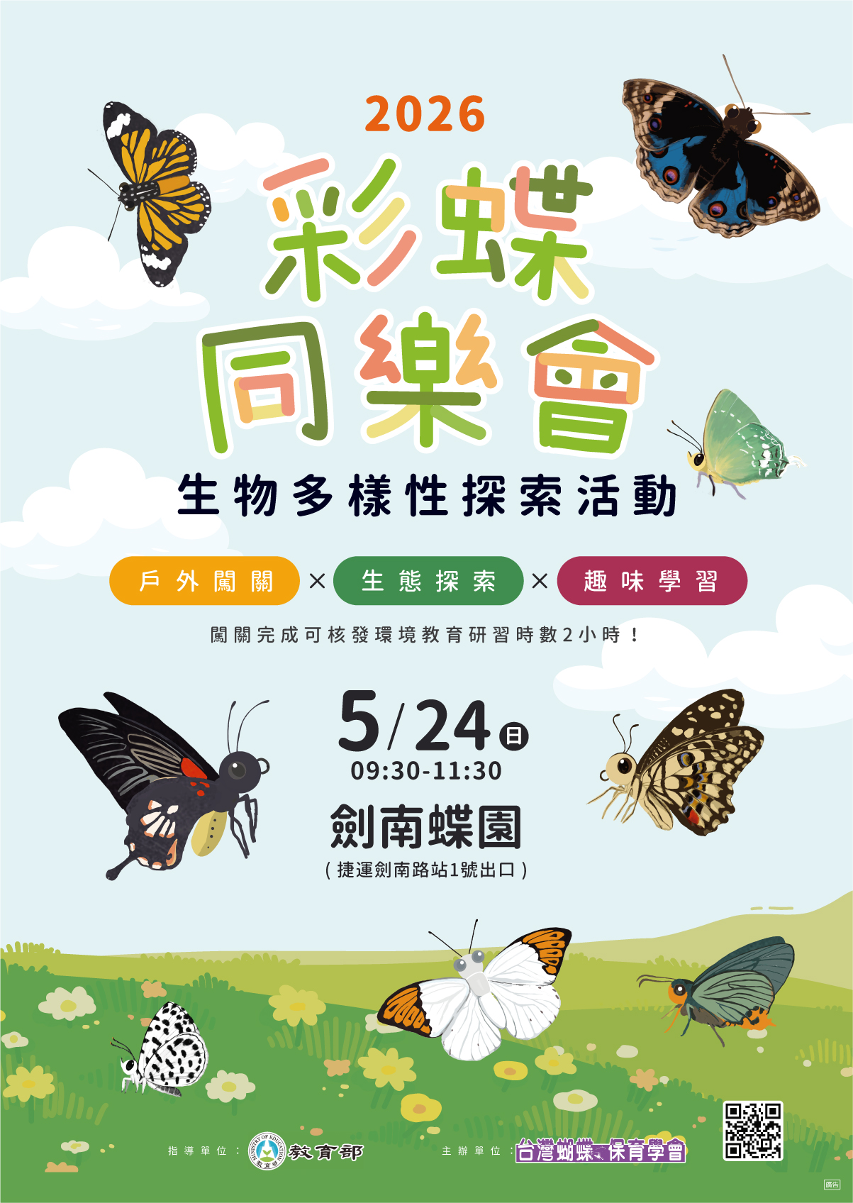 二、115年05月24日於劍南蝶園(捷運劍南路站1號出口)舉行 「2026彩蝶同樂會」生物多樣性探索活動,敬請踴躍參加。